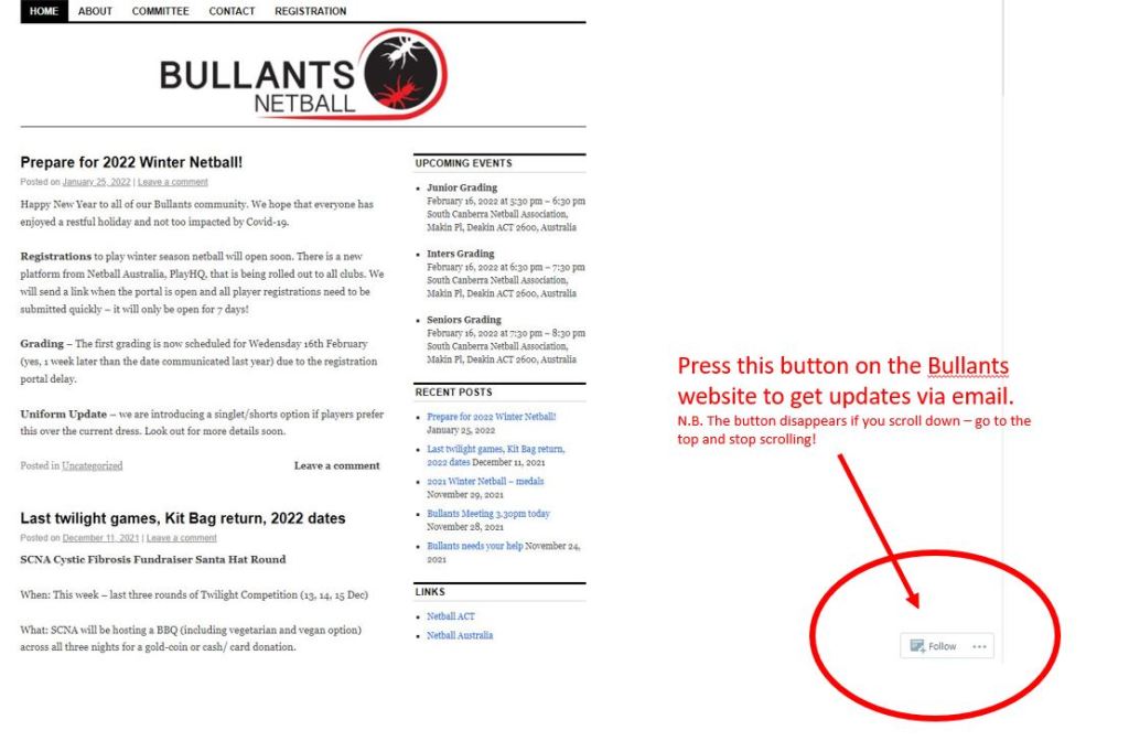To get our communications, you need to press the ‘follow’ button on our website: