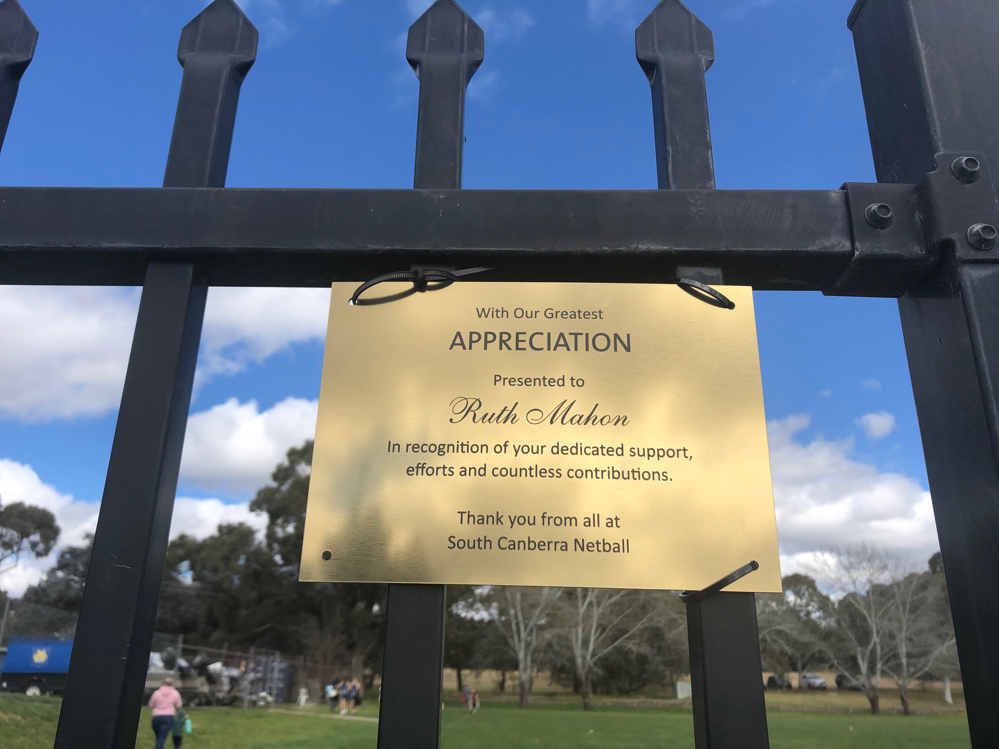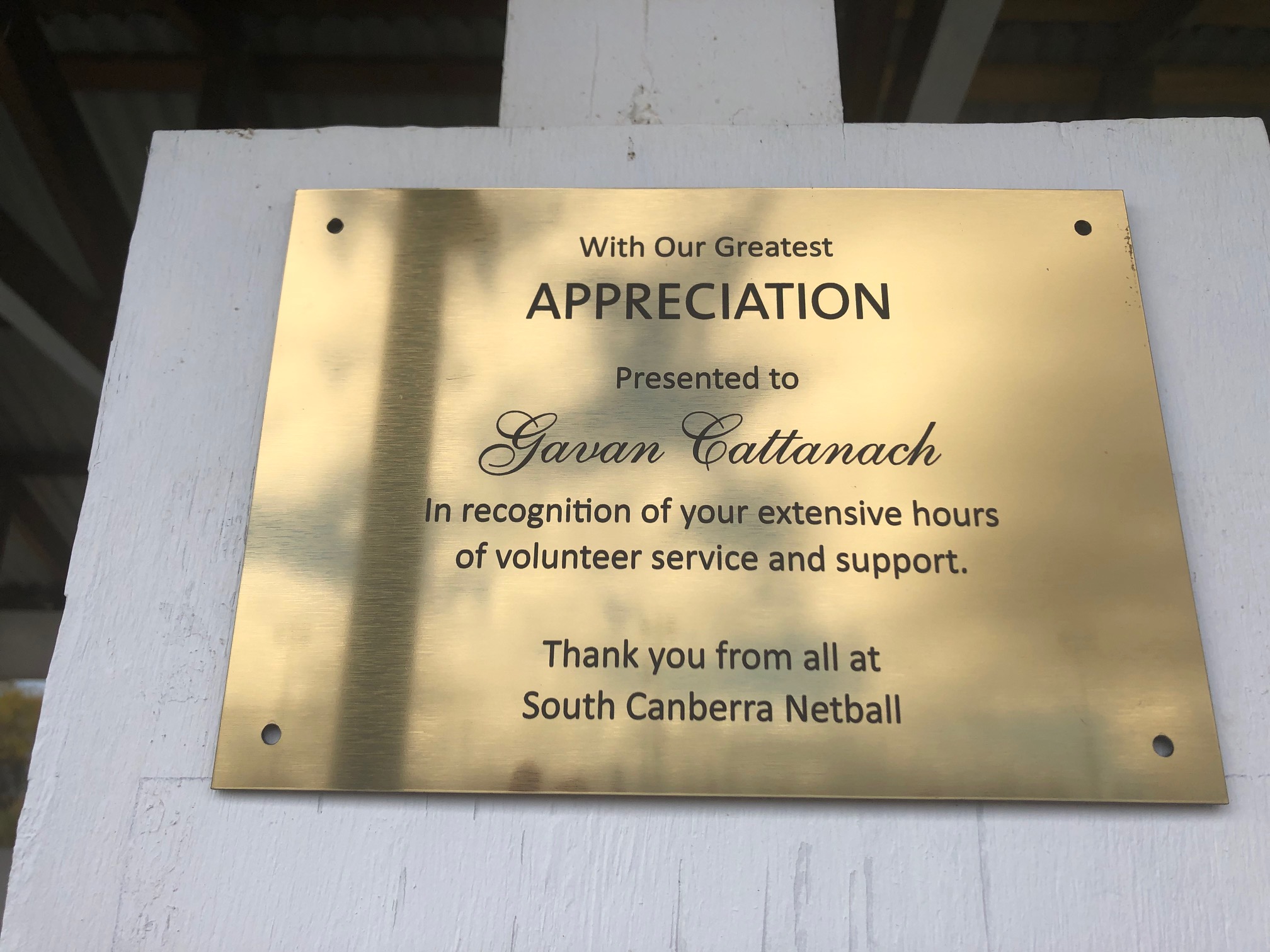 A brass plaque has been erected over the BBQ area in recognition of Gavan Cattanach’s building and general maintenance efforts around the SCNA courts. Gavan’s volunteer efforts for SCNA have been supported by his Bullants family members – Heather, Brittany and Becky – all of who have played with our club and Heather actively involved in the Bullants committee for many years.