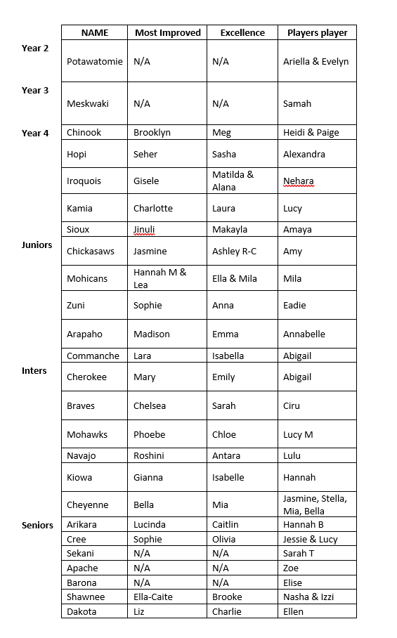 Well done to those players and coaches who have received recognition for their effort over the season.